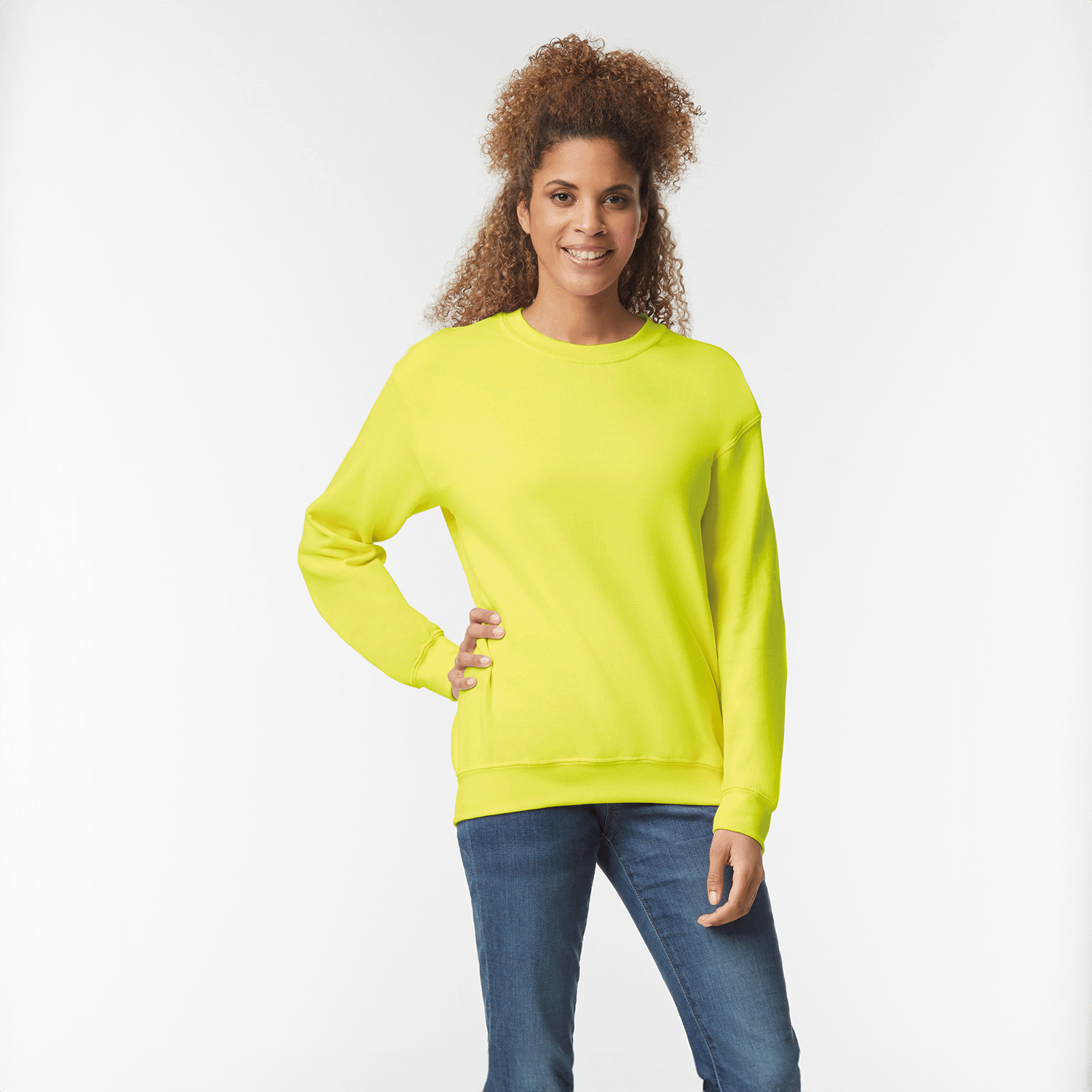 Wrap up in the plush, cosy comfort of this crewneck sweatshirt. The pre-shrunk cotton/polyester blend fabric stays comfortable, with less pilling. And it’s machine washable, so caring for it feels as laid-back as wearing it.