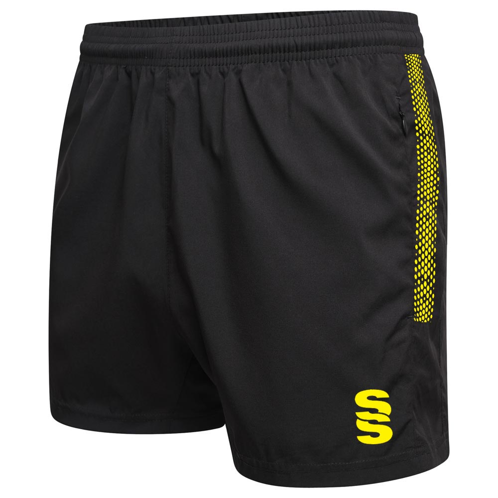 The Performance Gym Short is made with a poly peached micro-fibre blend, with a modern shorter leg length. They're built for gym and physical exercise and feature an elasticated hem with draw cord for flexibility and comfort. 2 Zipped pockets allow for small belongings. To finish, our Surridge SS logo is situated on the left bottom hem.