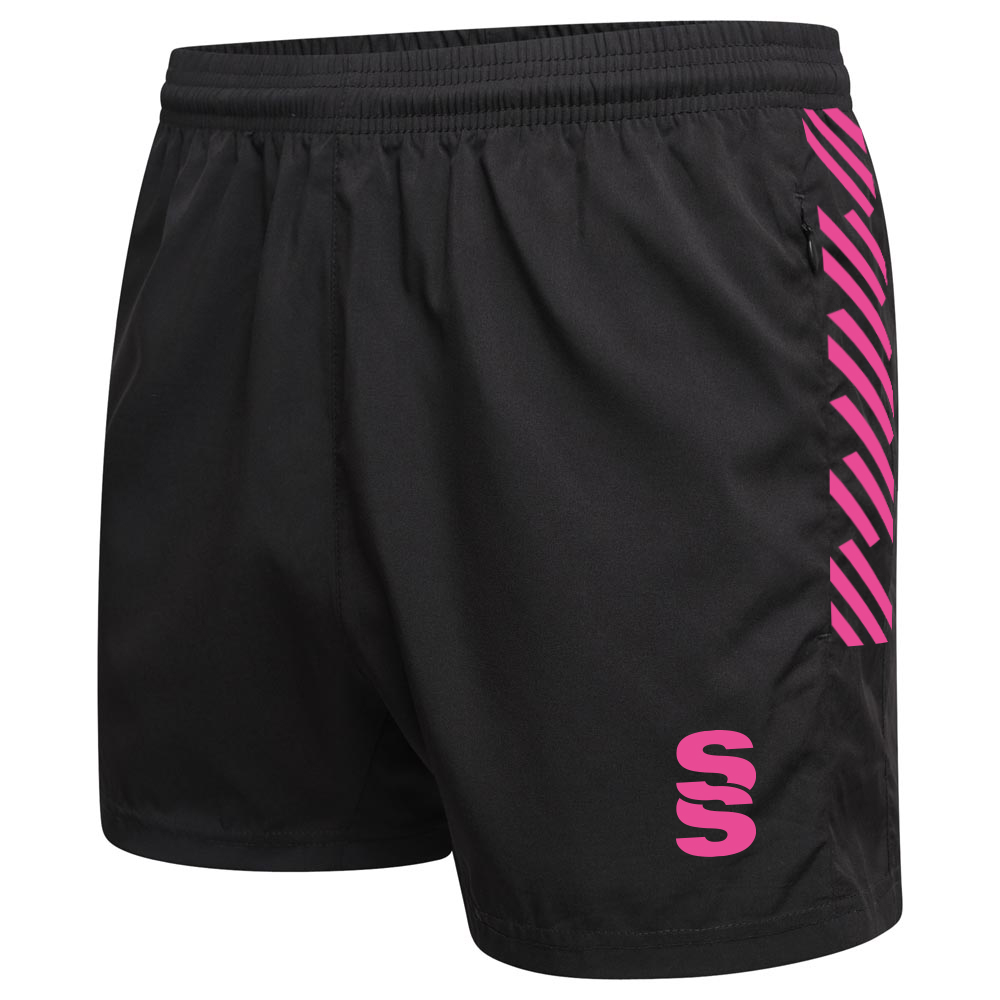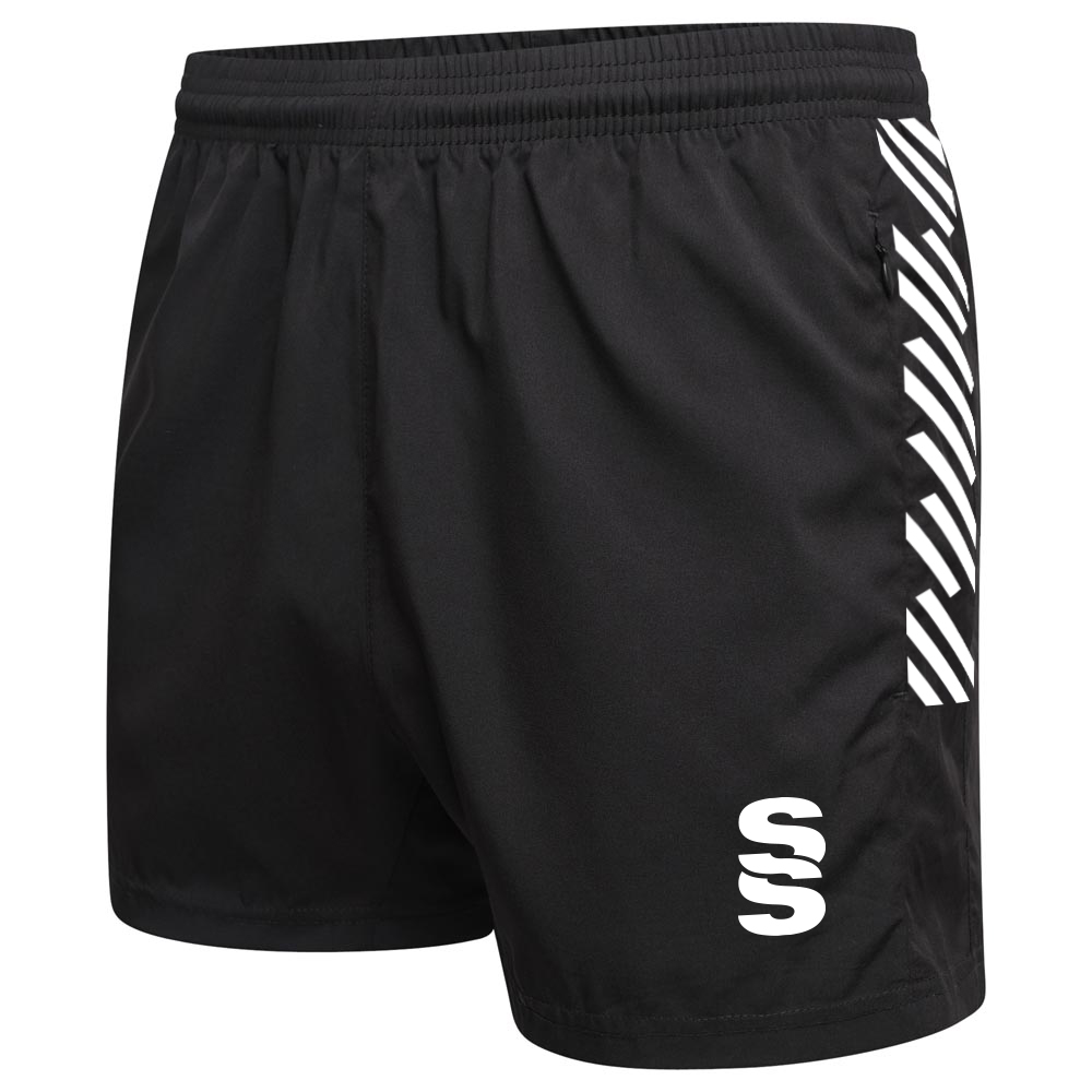 The Performance Gym Short is made with a poly peached micro-fibre blend, with a modern shorter leg length. They're built for gym and physical exercise and feature an elasticated hem with draw cord for flexibility and comfort. 2 Zipped pockets allow for small belongings. To finish, our Surridge SS logo is situated on the left bottom hem.